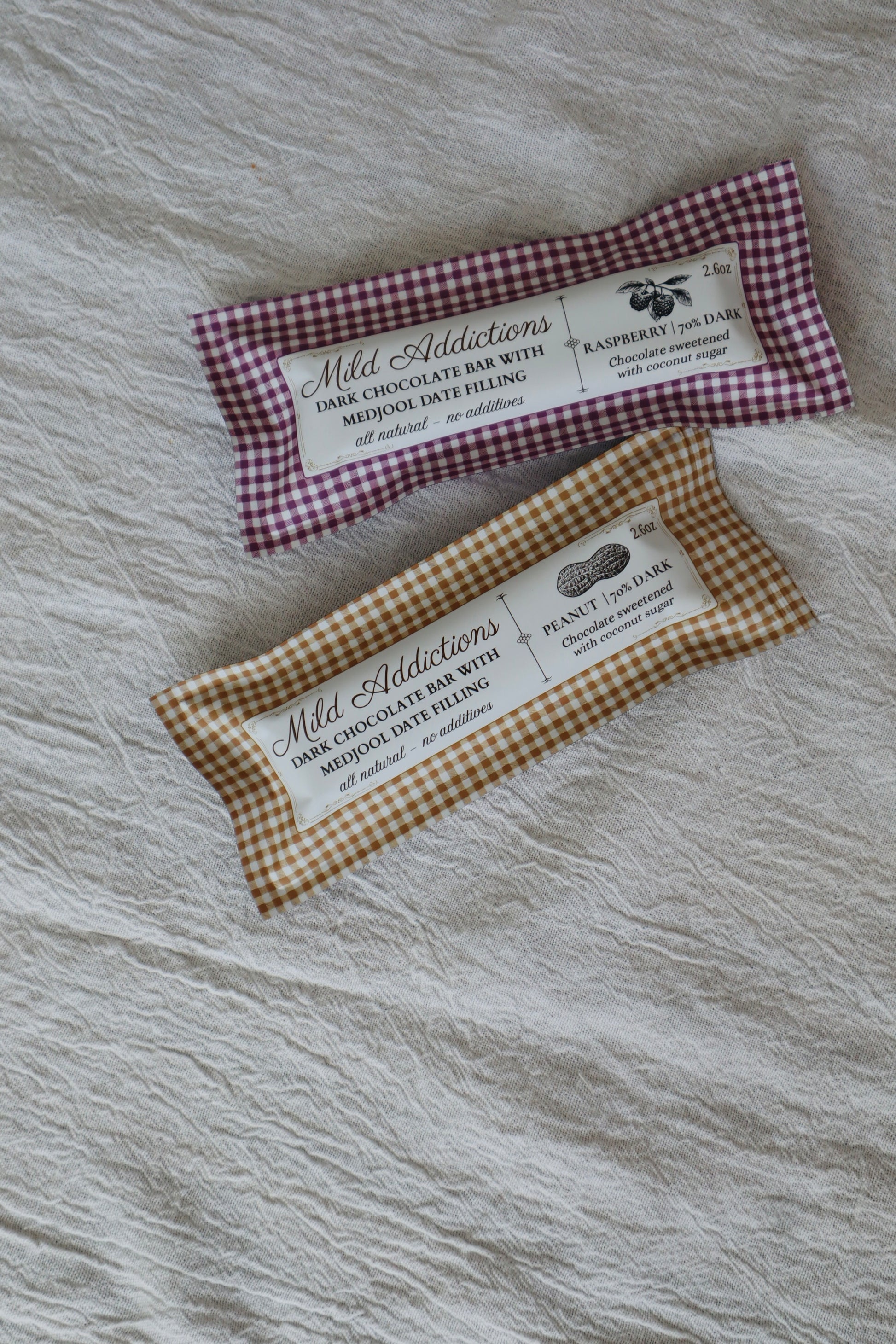 Bring back the nostalgia of PB&J - but with chocolate. This bundle pairs two handcrafted 2.6oz dark chocolate bars each filled with luscious smooth Medjool dates. One bar bursts with tart raspberry sweetness, while the other melts into creamy peanut butter richness. Together, they’re the perfect grown-up twist on a childhood favorite.